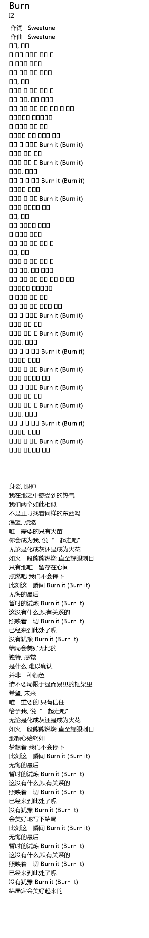 | [01:12.855] | 잠깐의 시련 쯤 Burn it (Burn it) |