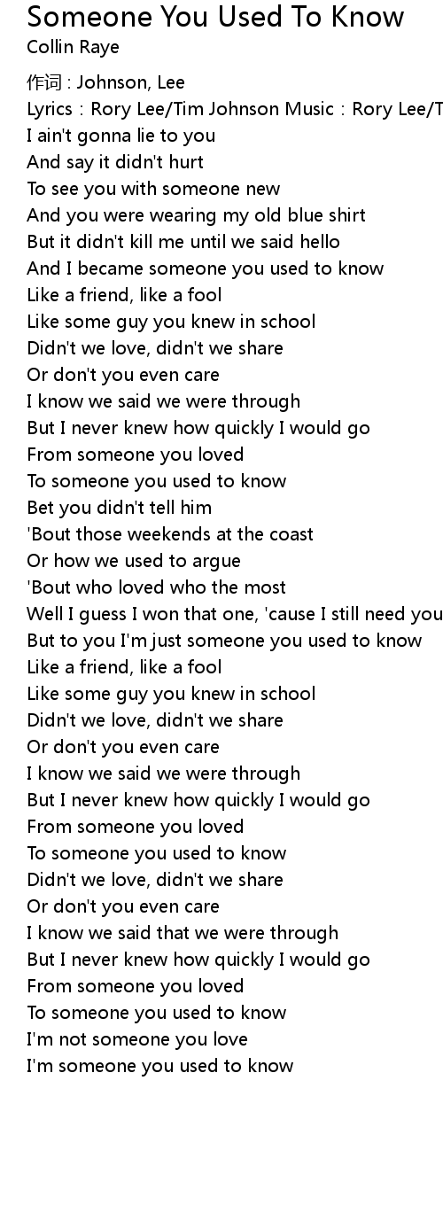 | But to you I'm just someone you used to know | |