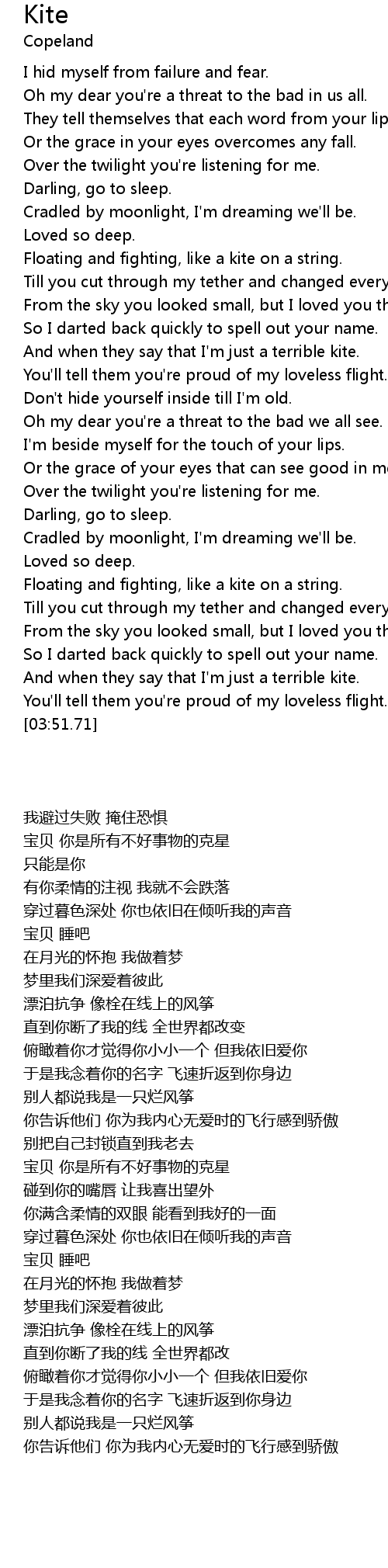 | [03:09.38] | And when they say that I'm just a terrible kite. |