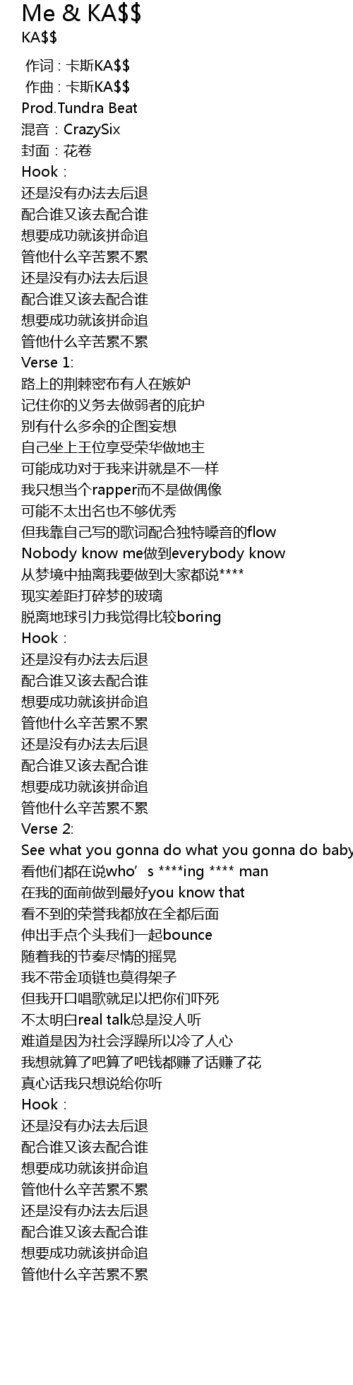 | [00:00.000] | 作词 : 卡斯KA$$ |
