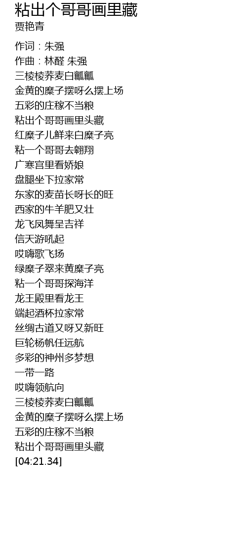 | [04:08.22] | 粘出个哥哥画里头藏 |