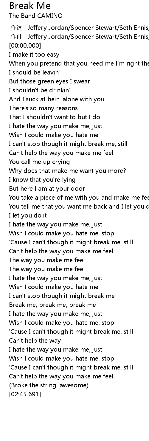 | [02:36.691] | 'Cause I can't though it might break me, still |