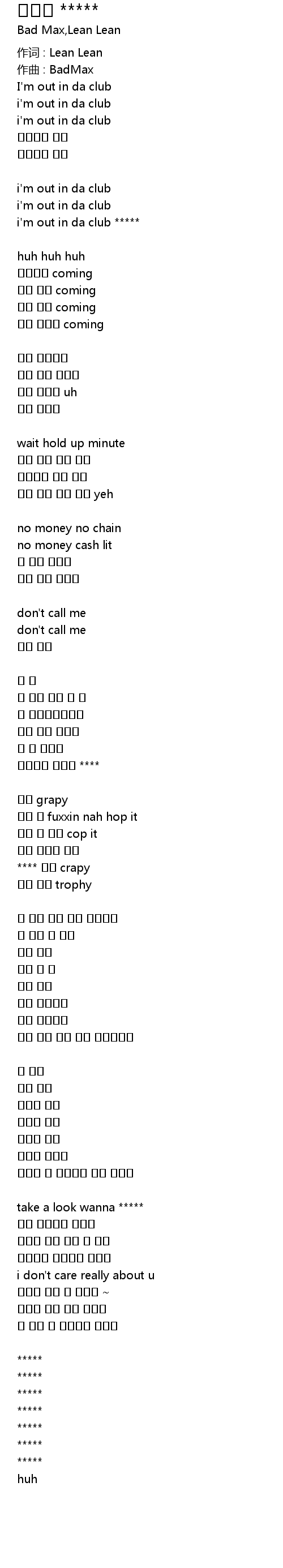 | i'm out in da club ***** | |
