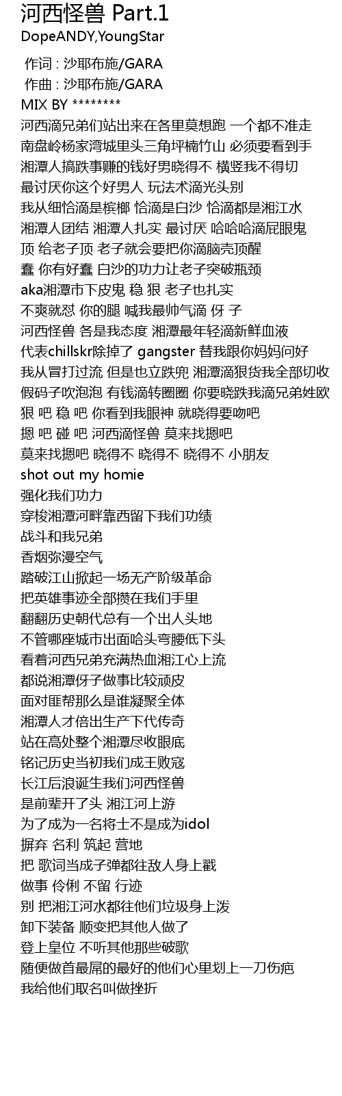 | [00:58.905] | 河西怪兽 各是我态度 湘潭最年轻滴新鲜血液 |