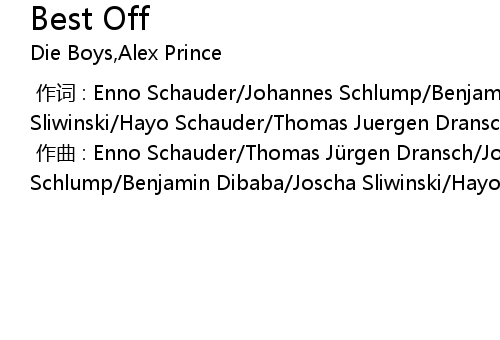| [00:00.00-1] | zuò qǔ : Enno Schauder Thomas Jü rgen Dransch Johannes Schlump Benjamin Dibaba Joscha Sliwinski Hayo Schauder Thomas Kü chler |