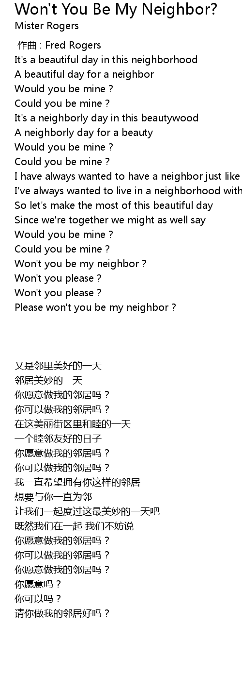 | [00:33.00] | It's a beautiful day in this neighborhood |