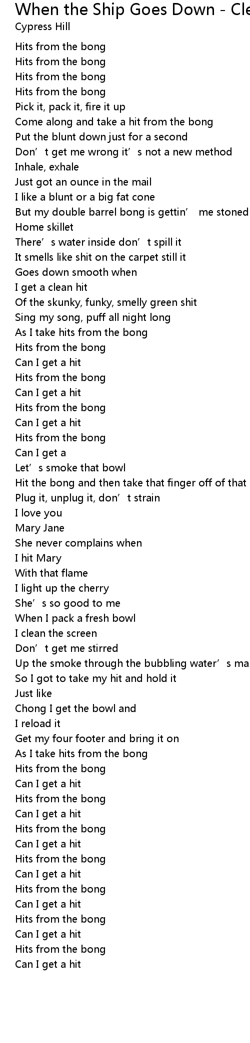 | Up the smoke through the bubbling water’s makin’ it pure | |