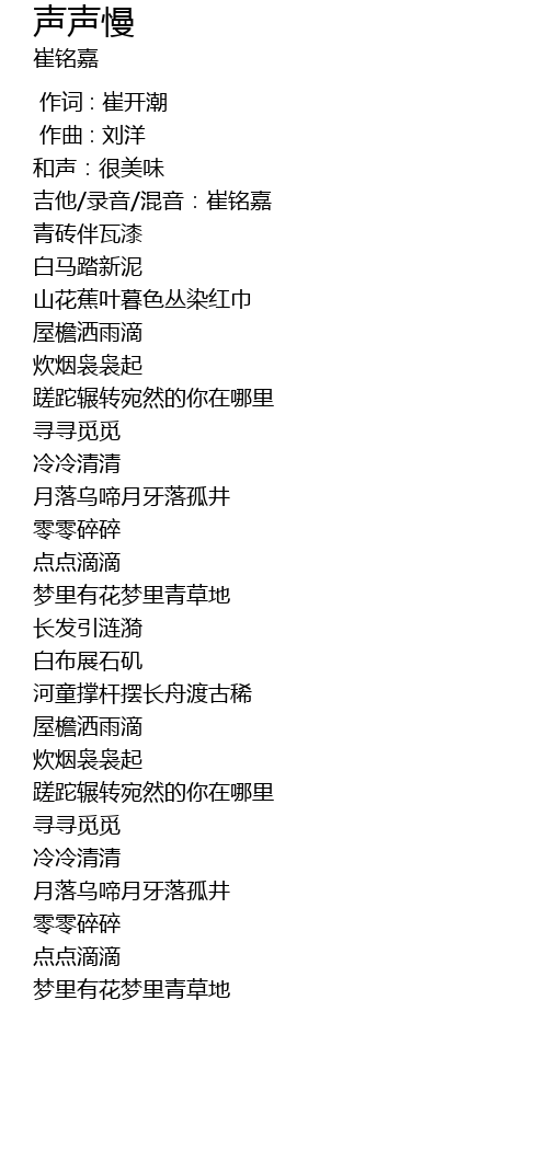 | [00:02.099] | 吉他/录音/混音:崔铭嘉 |