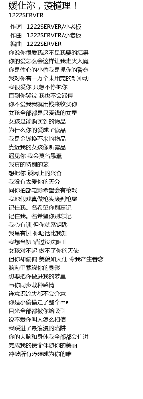 | [00:00.000] | 作词 : 1222SERVER/小老板 |