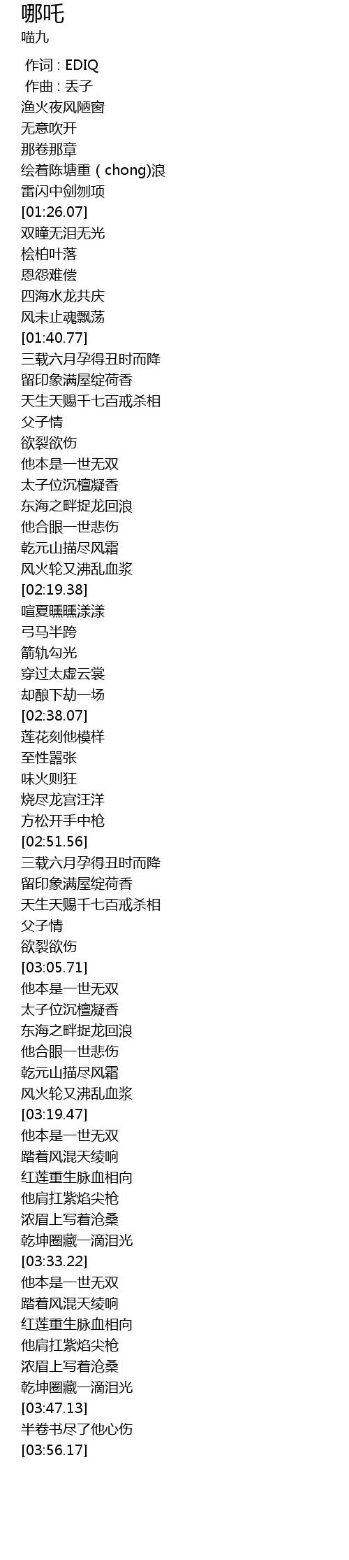 | [02:53.08] | 三载六月孕得丑时而降 |