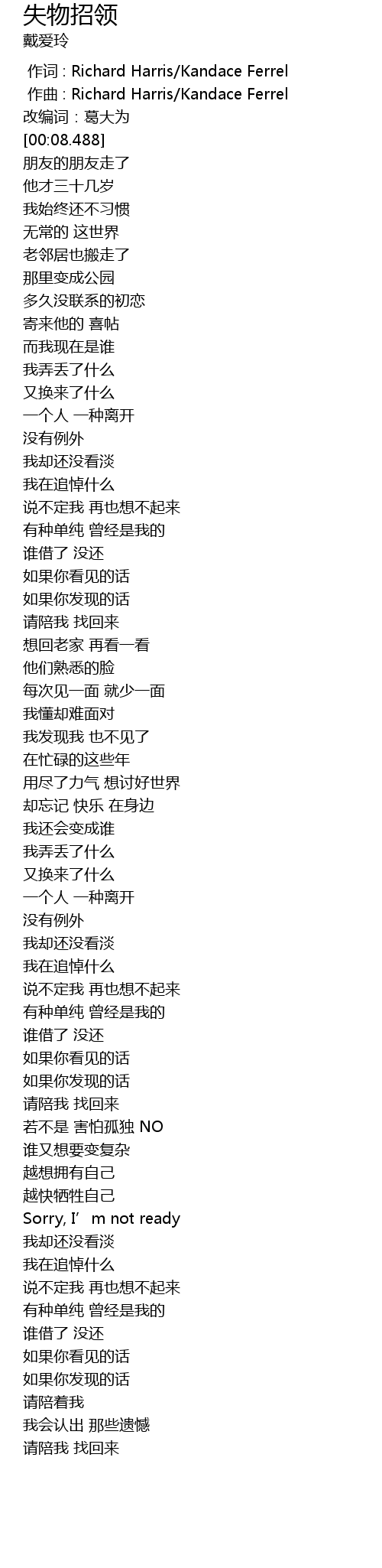 | [01:21.796] | qǐng péi wǒ zhǎo huí lái |