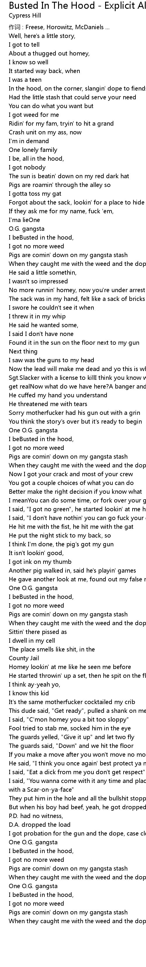| Now the lead will make me dead and yo this is what he said"My name is Sgt.Slacker with a license to killI think you know what time it is, it's time to get realNow what do we have here?A banger and his peers" | |
