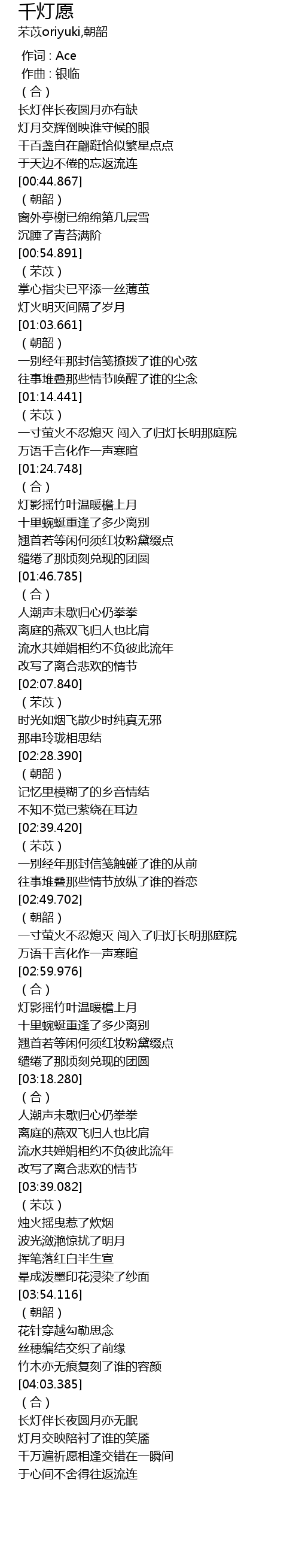 | [00:00.000] | zuò cí : Ace |