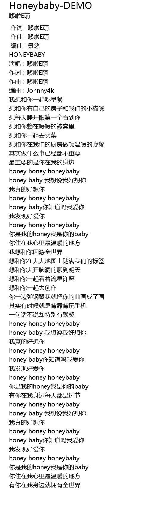 | [05:03.134] | honey baby 我想说我好想你 |