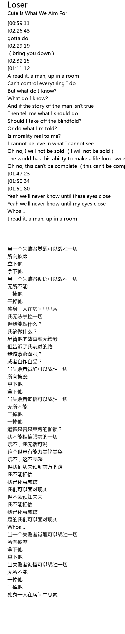 | [02:22.72][00:59.11][00:10.93] | A loser can win whenever they want to |