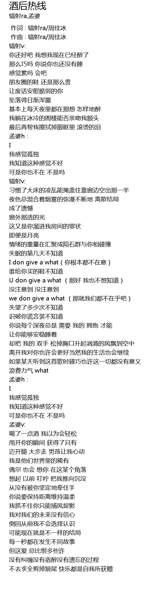 | [00:00.000] | 作词 : 辐射ra/周佳冰 |