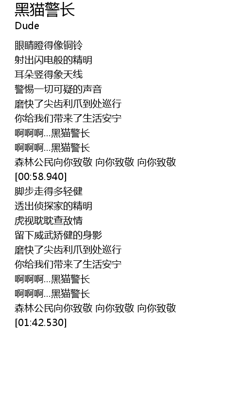 | [01:30.280] | 啊啊啊...黑猫警长 |
