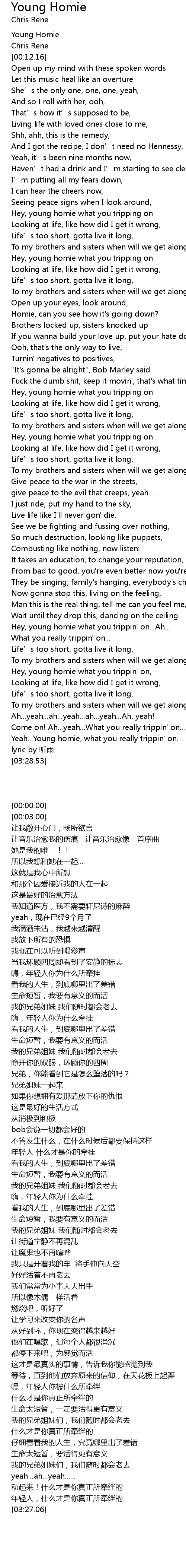 | [02:50.12] | Hey, young homie what you trippin' on, |