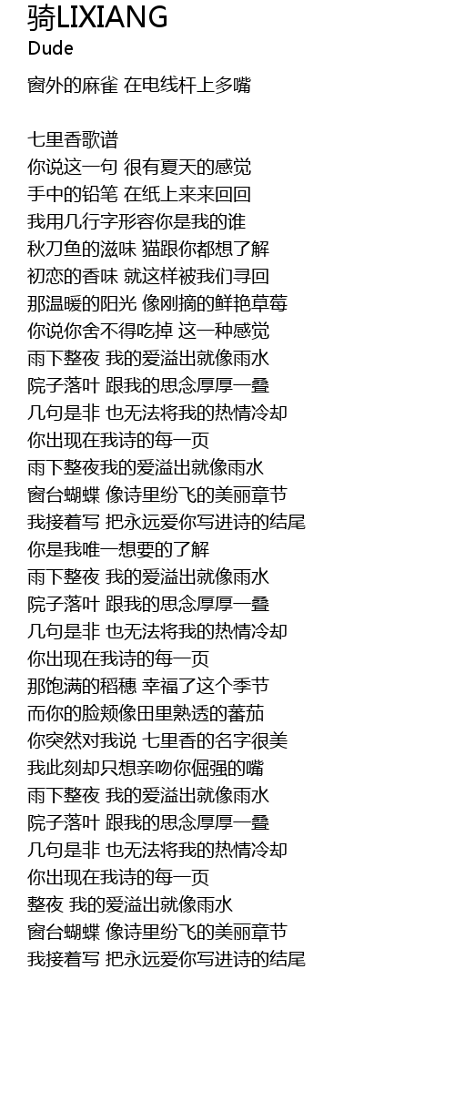 | nǐ tū rán duì wǒ shuō qī lǐ xiāng de míng zì hěn měi | |