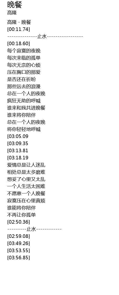 | [00:02.79] | 高隆-晚餐 |