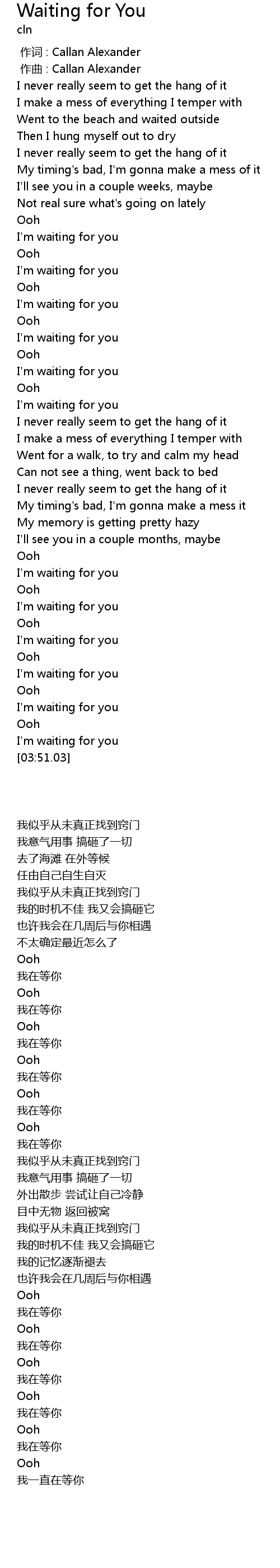 | [01:50.14] | I'm waiting for you |