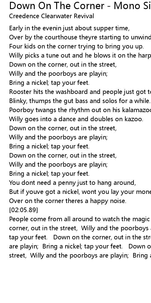 Down On The Corner - Mono Single Lyrics
