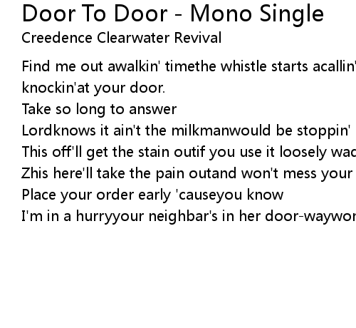 | Find me out awalkin' timethe whistle starts acallin'maybe stoppin' early knockin'at your door. | |