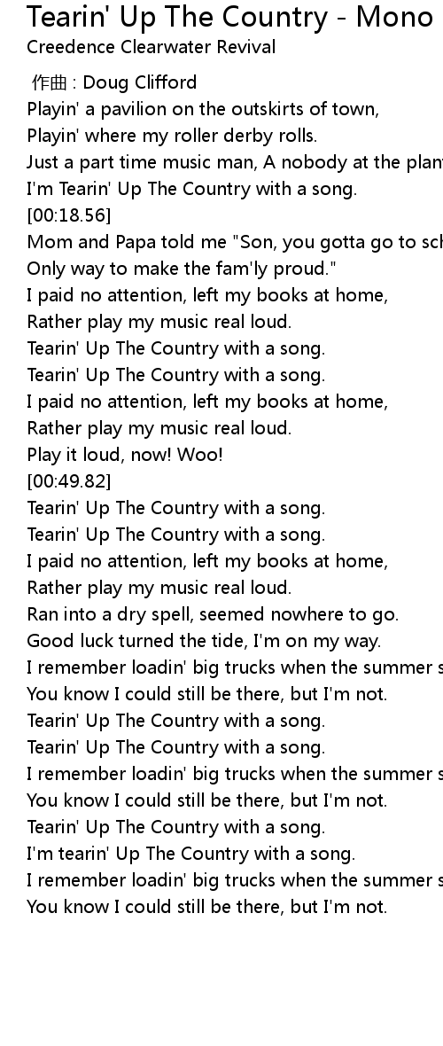 | [01:09.00] | Tearin' Up The Country with a song. |