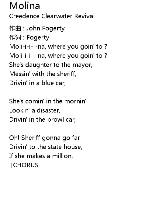 | Moliiiina, where you goin' to ? | |