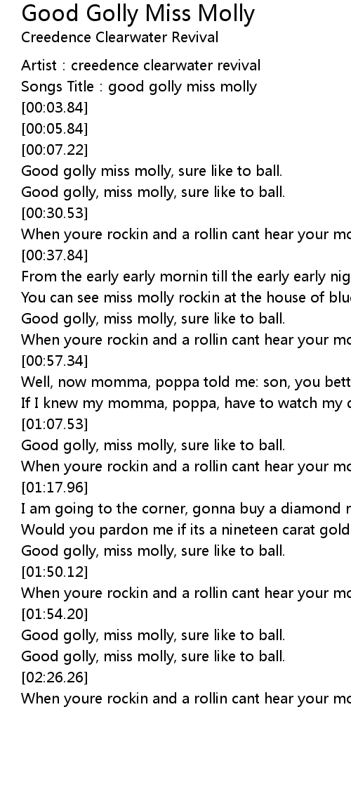 | [00:46.15] | Good golly, miss molly, sure like to ball. |