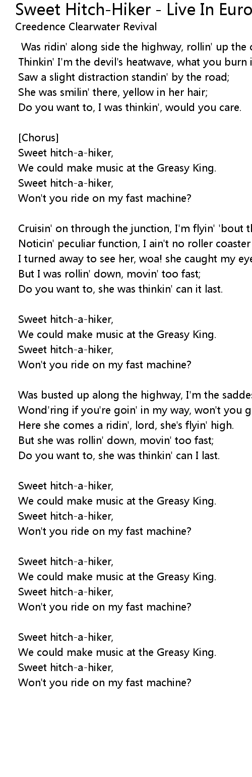 Sweet hitch-a-hiker, |