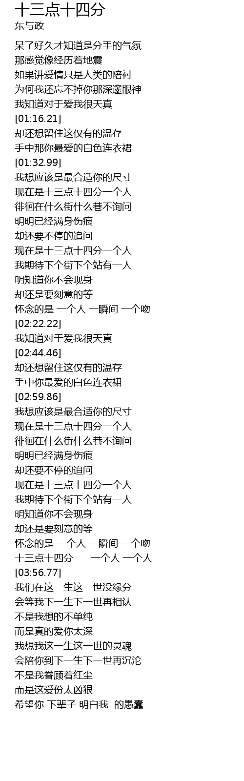 | [03:47.83] | 十三点十四分 一个人 一个人 |