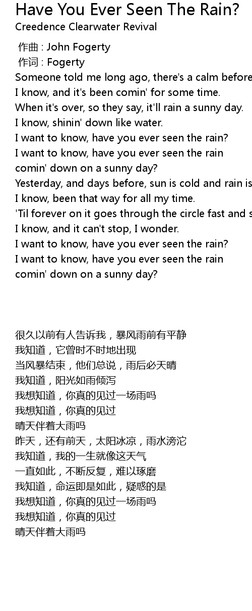 | [00:47.000] | I want to know, have you ever seen the rain? |
