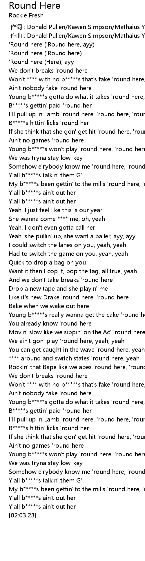 | [00:03.30] | 'Round here ('Round here, ayy) |