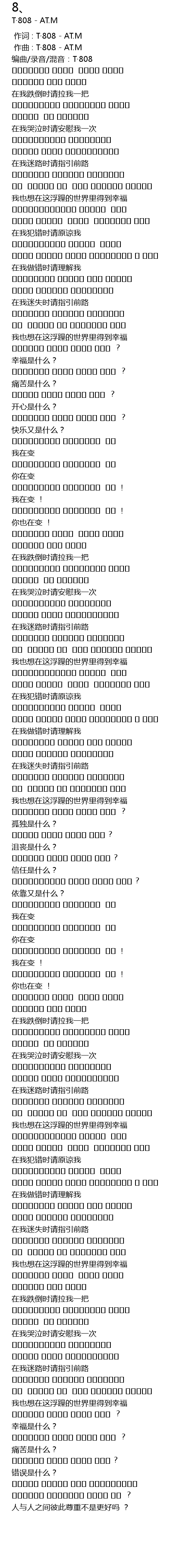 | [00:00.000] | 作词 : T·808 - AT.M |