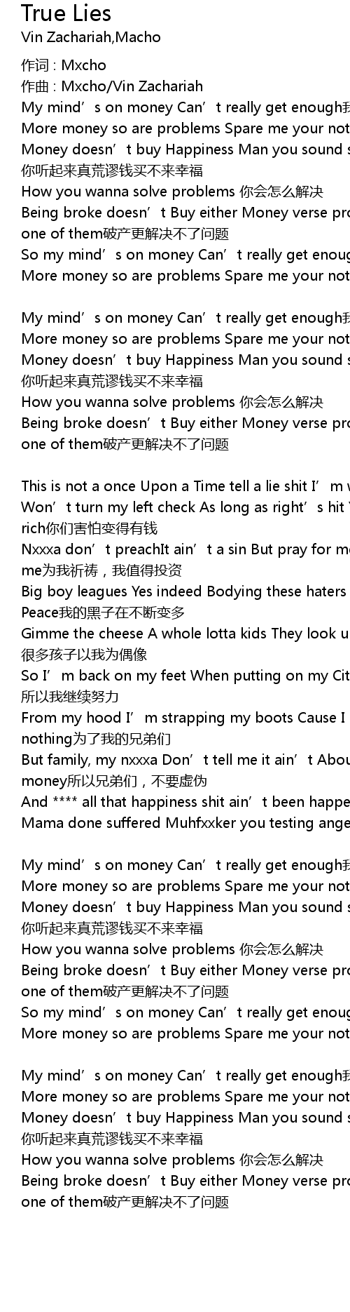 | Nxxxa don' t preachIt ain' t a sin But pray for me I get a check And invest in me wei wo qi dao, wo zhi de tou zi | |