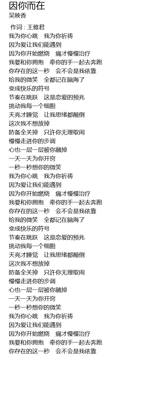 | [01:39.337] | 我为你心跳 我为你祈祷 |