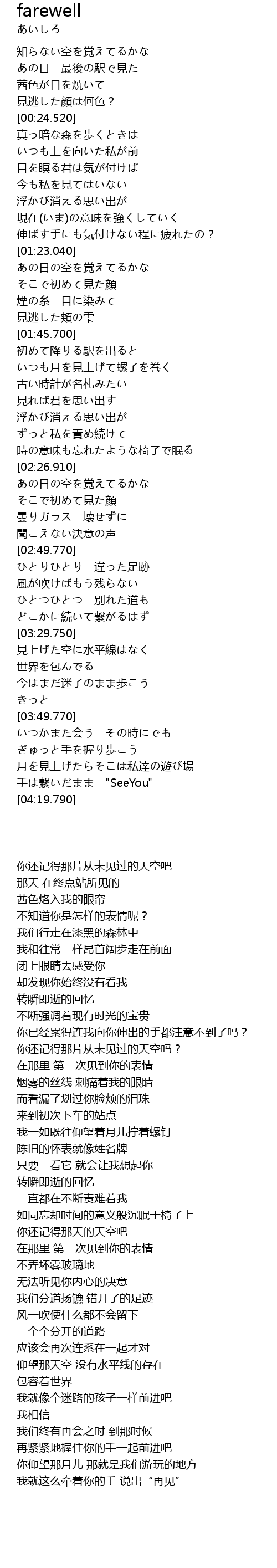 | [04:10.730] | 手は繋いだまま "SeeYou" |