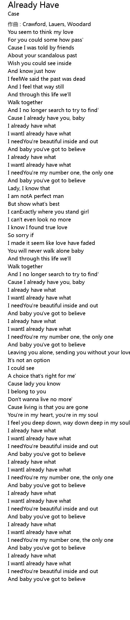| Cause I already have you, baby | |