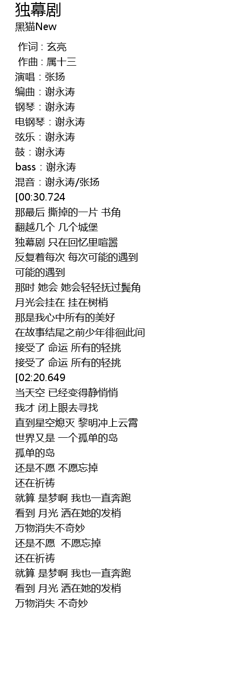 | [00:09.181] | 编曲:谢永涛 |