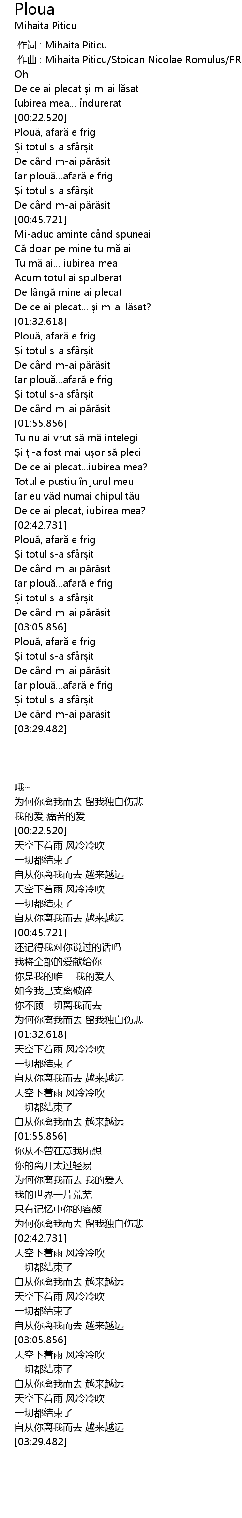 | [00:00.000] | 作词 : Mihaita Piticu |