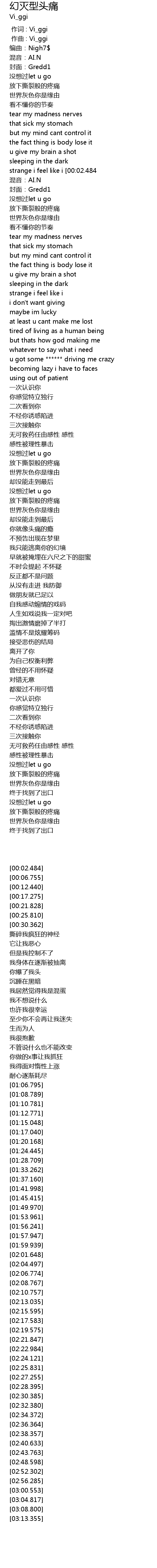 | [00:01.000] | 作曲 : Vi_ggi |