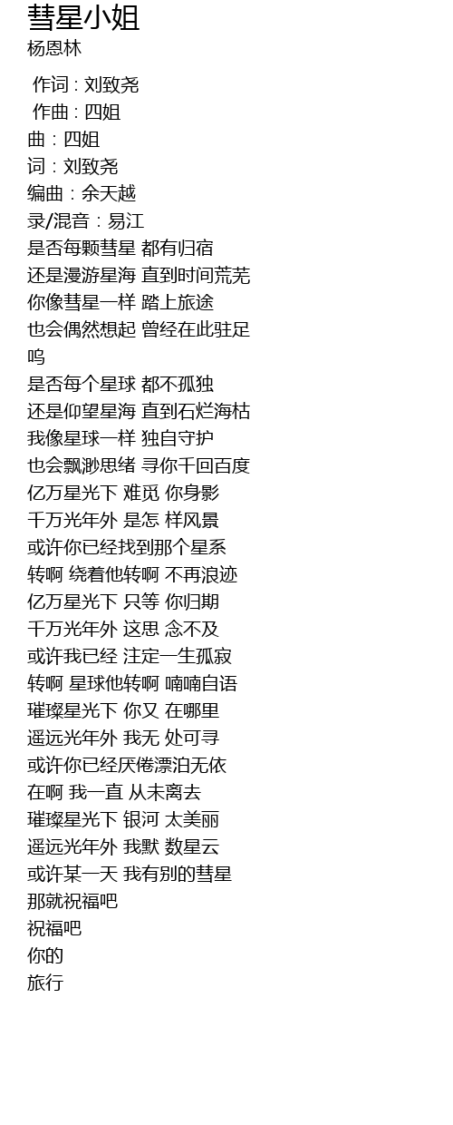 | [03:56.380] | 或许某一天 我有别的彗星 |
