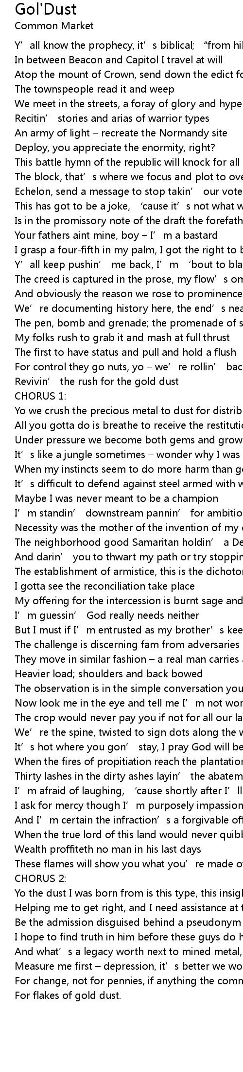| I’m standin’ downstream pannin’ for ambition to hand in | |