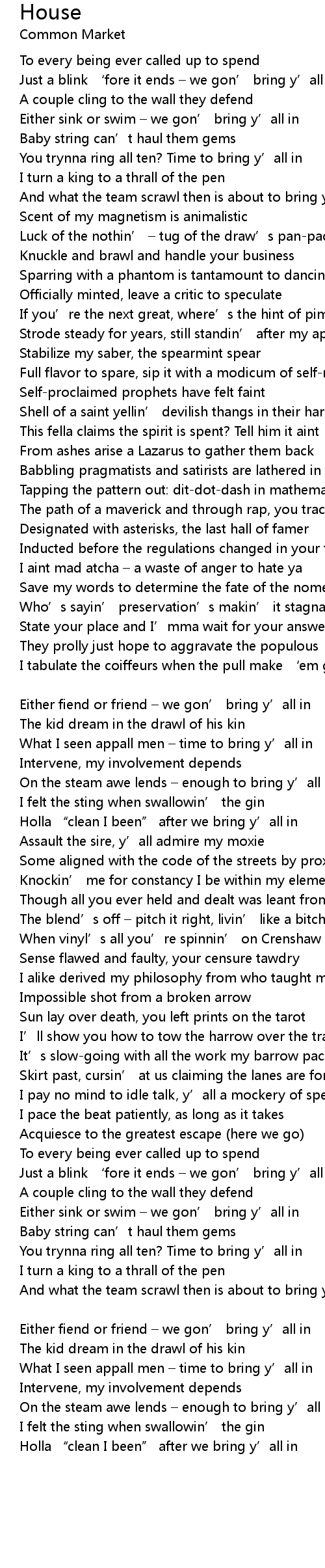 | Just a blink ' fore it ends we gon' bring y' all in | |