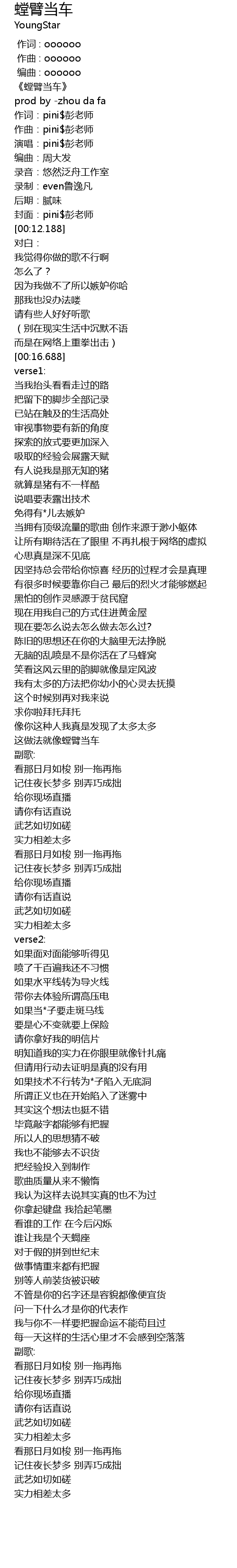 | [00:12.939] | 我觉得你做的歌不行啊 |