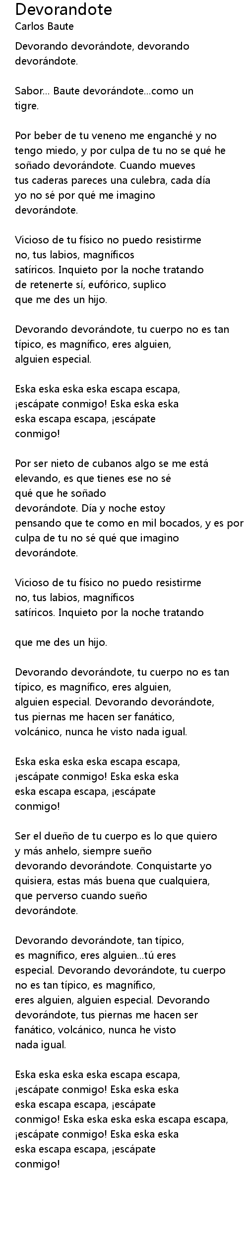 | Devorando devora ndote, tu cuerpo no es tan | |