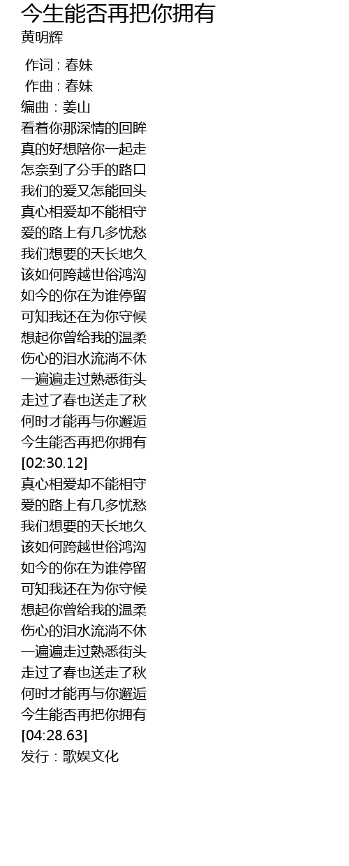 | [02:23.77] | jīn shēng néng fǒu zài bǎ nǐ yōng yǒu |