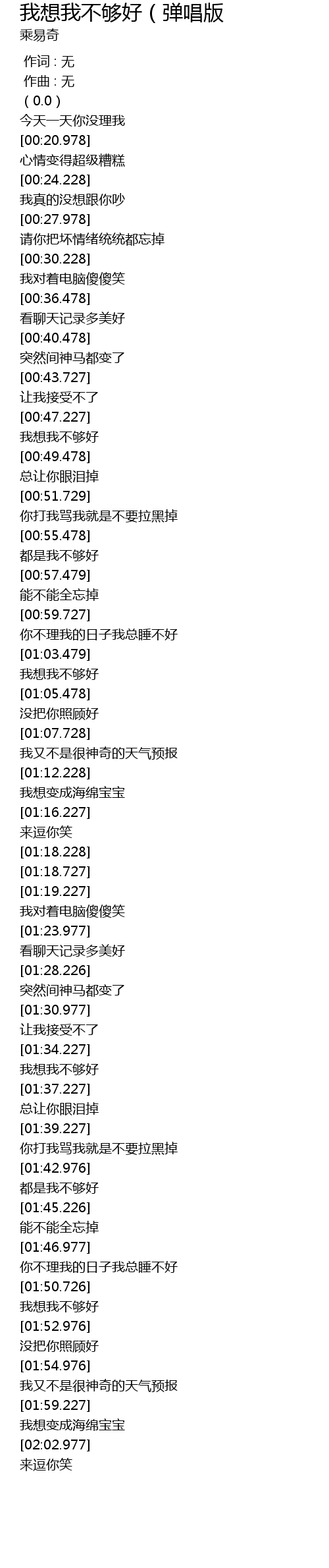 | [01:43.476] | dōu shì wǒ bù gòu hǎo |