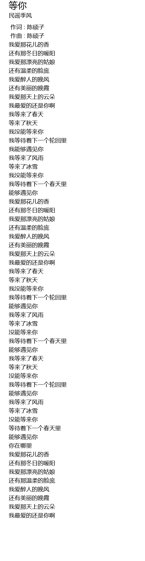 | [00:00.000] | 作词 : 陈硕子 |